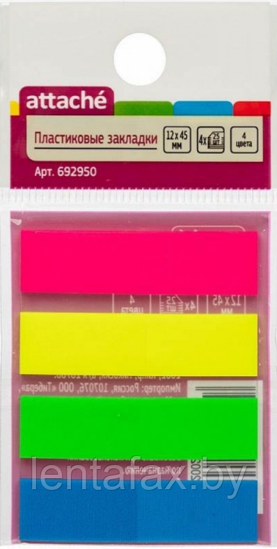 Закладки пластик 12*45, 25л*4цветов, Attache ЦЕНА БЕЗ НДС!