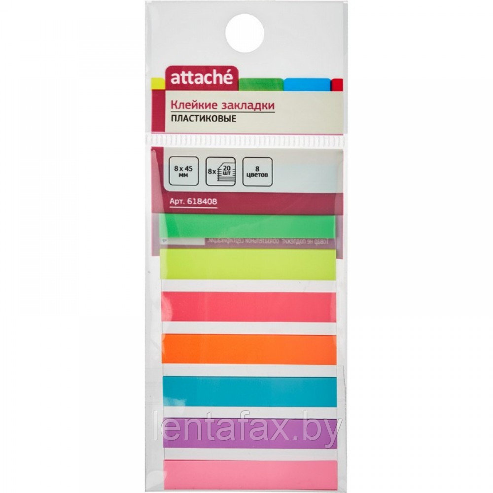 Закладки пластиковые Attache, 8*45мм, 160л (20л*8цв)