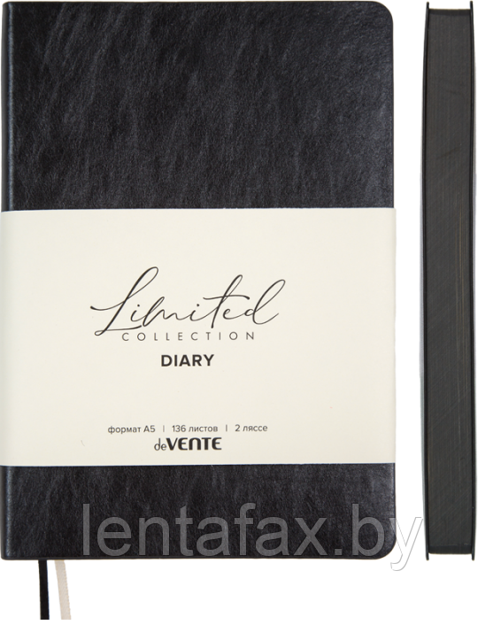 Ежедневник недатированный "deVENTE. Orto" A5 (145 ммx205 мм) 272 стр, кремовая бумага 70 г/м² с черным срезом, печать в 2 краски, мягкая обложка из искусственной кожи, перфорация, закругленные уголки, 2 ляссе, в термоусадочной пленке, черный